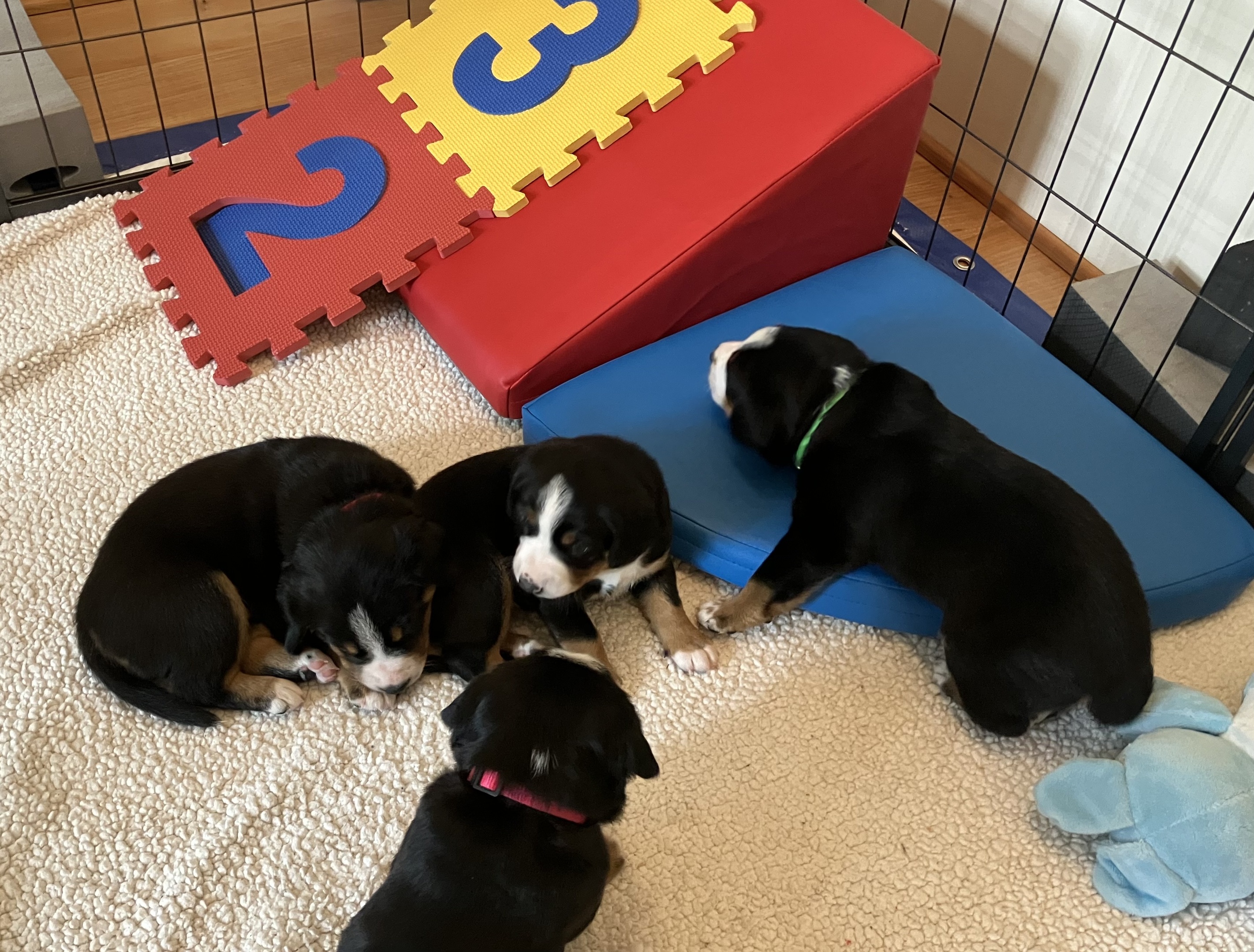It has been another whirlwind of activity as the puppies continue to transform into curious, playful little explorers right before our eyes. Here’s a look at what they’ve been up to this week: